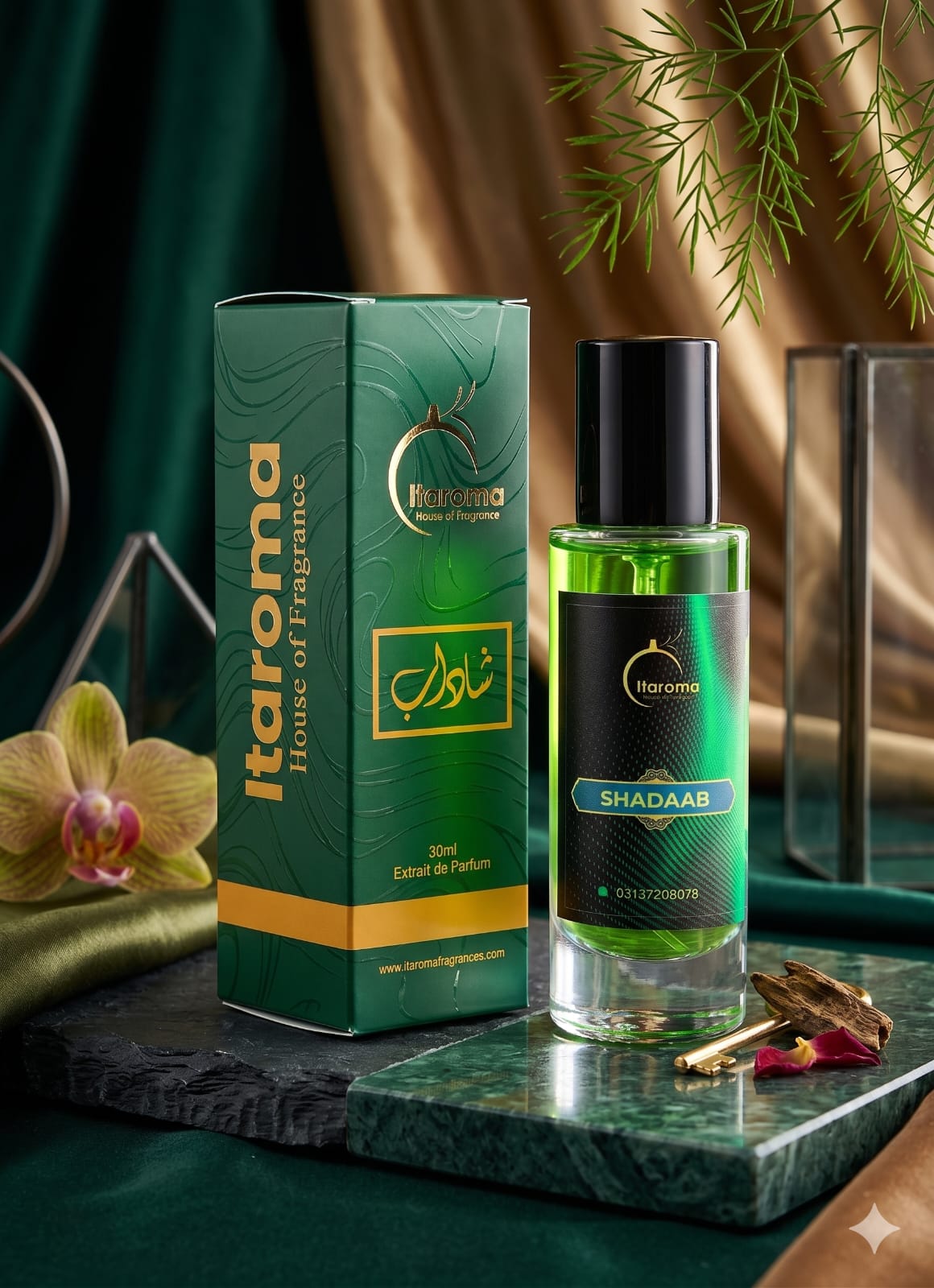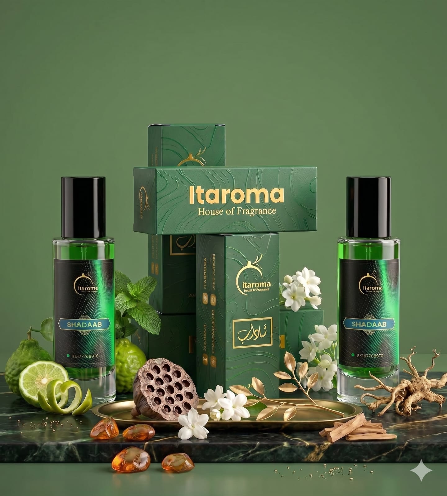 Itaroma`s SHADAAB is a refined woody–spicy fragrance that opens with a fresh burst of mandarin and bergamot, subtly warmed by a hint of saffron. As it develops, the heart becomes dry and elegant, led by cedarwood and vetiver, giving it a clean, slightly earthy character. The dry-down is smooth and comforting, built on musk and amber, which add warmth and a soft sensual finish. Overall, it transitions from bright citrus → dry woods → warm musky amber, creating a scent that feels sophisticated, understated, and effortlessly masculine.